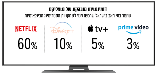 מדוח של איגוד האינטרנט הישראלי משנת 2023, האחרון שיצא בנושא, עולה כי כ-60% מהישראלים מחוברים לנטפליקס - דומיננטיות מובהקת בשוק. במקום השני נמצאת דיסני פלוס עם 10%, אפל טיוי משתרכת עם 5%, ואמזון פריים עם 3%. מבחינת השחקניות הישראליות, ל-yes יש 562 אלף לקוחות, לסלקום יש 275 אלף לקוחות, ולפרטנר כ-200 אלף לקוחות. ההערכות הן שלהוט יש 550-570 אלף לקוחות, ול-freeTV יש 160 אלף.