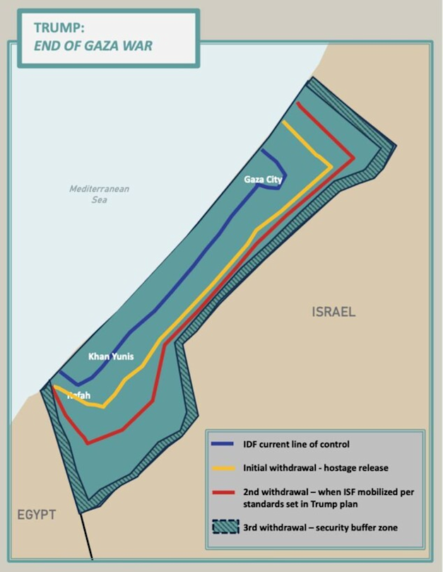 לפי התוכנית של נשיא ארה"ב, צה"ל ייסוג בהדרגה בהתאם לאבני דרך מוסכמות, ולא יספח את עזה. לצד זאת, יושק תהליך דיאלוג בין-דתי לשינוי נרטיבים והטמעת ערכי דו-קיום, ובטווח הארוך - אם יושלמו רפורמות ברשות הפלסטינית - עשוי להיפתח מסלול אמין להגדרה עצמית ולמדינה פלסטינית.