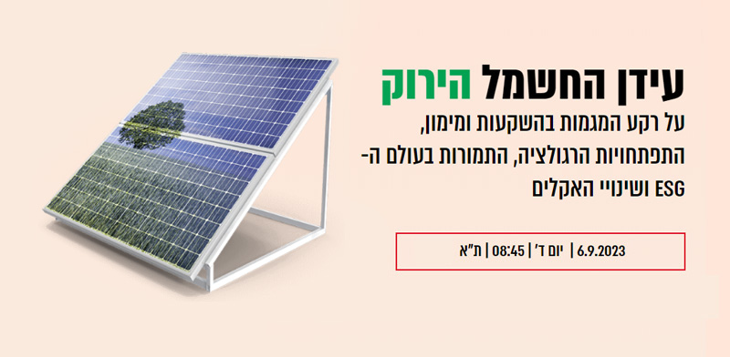 גלובס, בשיתוף דוראל אנרגיה, מובילים דיון בהשתתפות מומחי הענף על ההיבטים השונים של עידן החשמל הירוק בישראל לרבות מימון, רגולציה, יזמות, חדשנות וקיימות, תוך ניתוח השוק המקומי והבינ״ל.